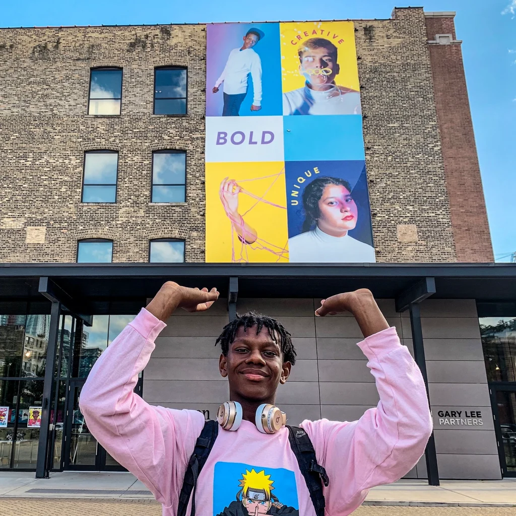 After taking eight visual arts courses at Marwen, Nakiya’h continues to dive into street art, digital and darkroom photography, film, comics, painting, and many more art mediums. He’s especially grown an interest in photography and connecting it to his perspective as a young artist living in Chicago.